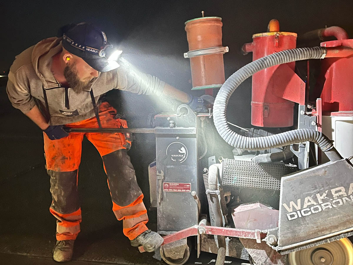 Die Arbeiten finden hauptsächlich in den Nachtstunden statt, um den regulären Flugbetrieb nicht zu beeinträchtigen. Ein eingespieltes Team übernimmt die Herausforderungen einer Nachtbaustelle und setzt sich dabei den Witterungseinflüssen aus.